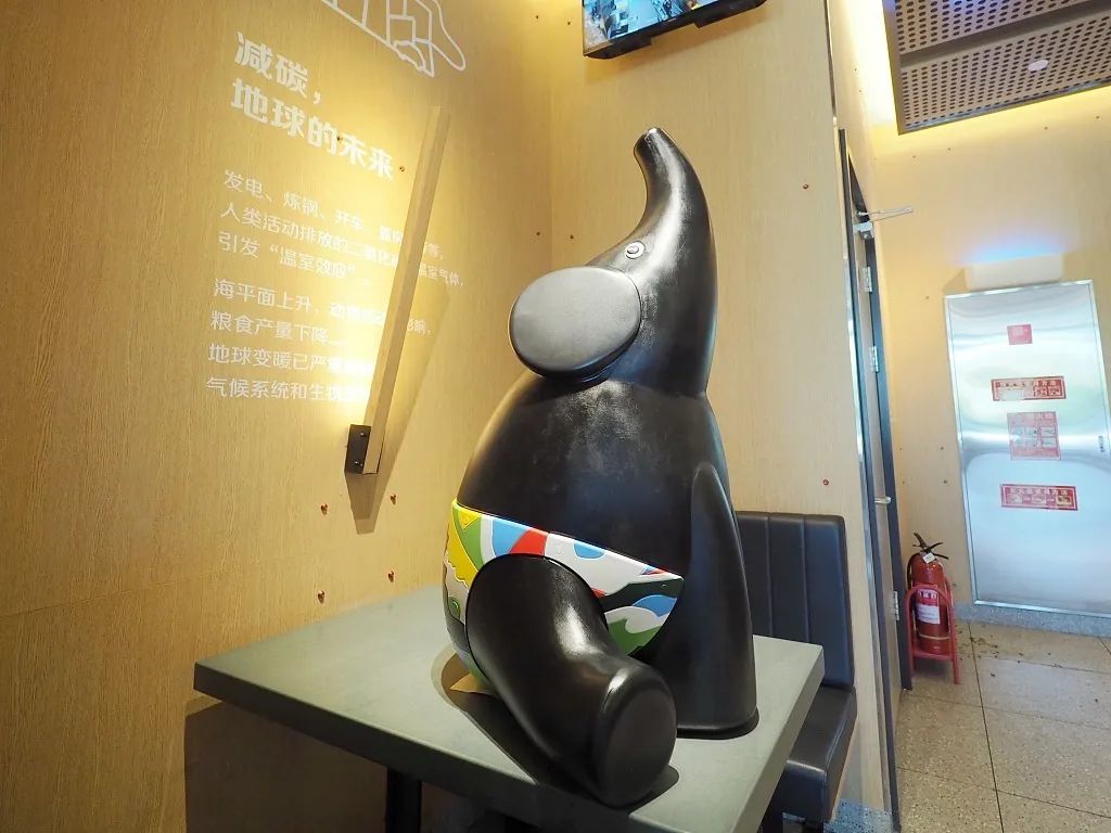 绿色回收也是零碳餐厅的一大亮点。麦当劳中国“重塑好物”项目作为绿色回收的核心,利用餐厅、供应链和行业内的废旧塑料产品,重新设计改造为餐厅和消费者所需的物品。比如,在麦当劳首钢园餐厅中,顾客使用的餐椅就是由海洋塑料回收制作的,餐厅中展示的“懵懵小象”装置也是由开心乐园餐玩具回收再造。