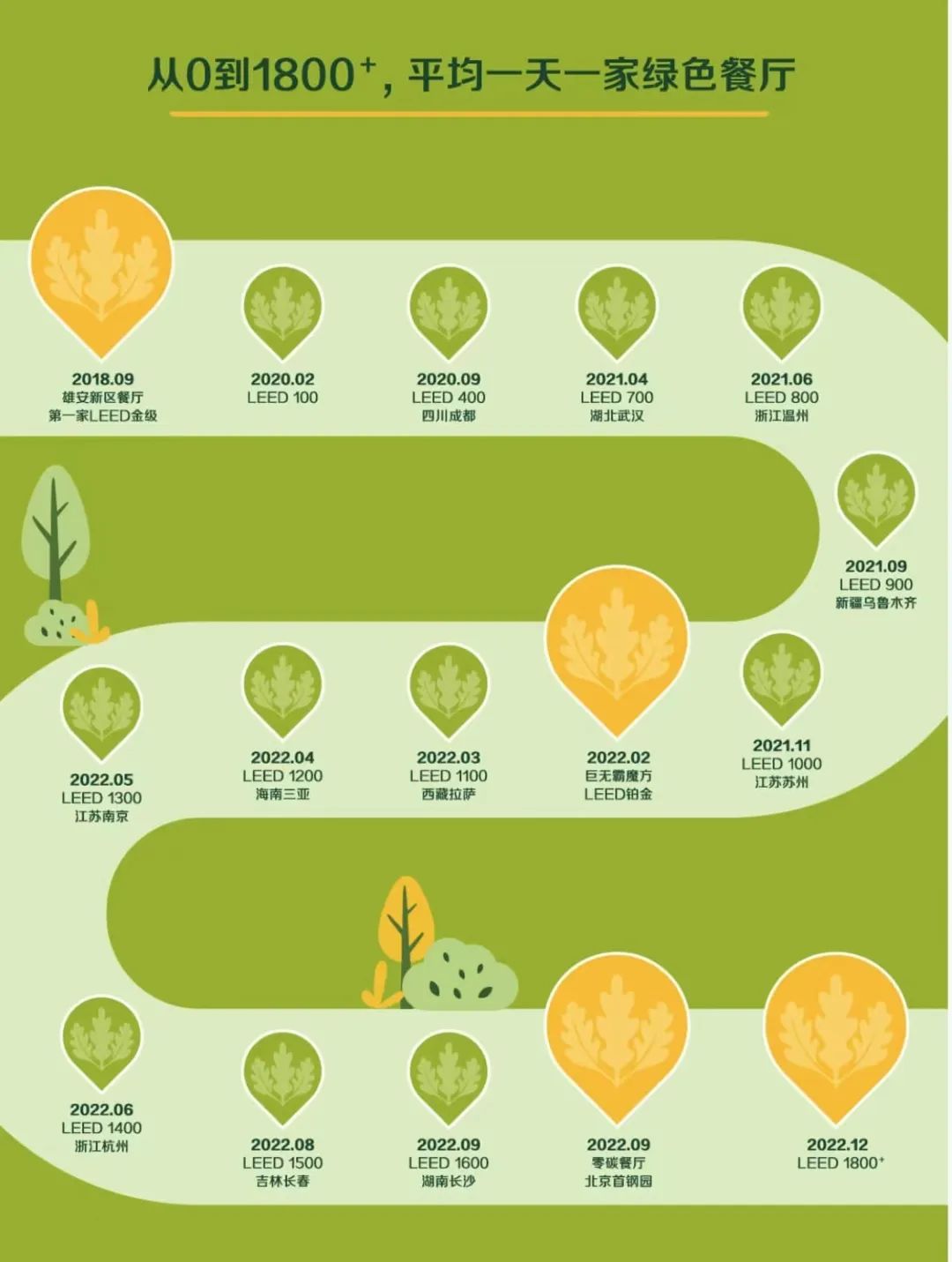麦当劳中国“绿色餐厅”发展里程碑。图片来自麦当劳。