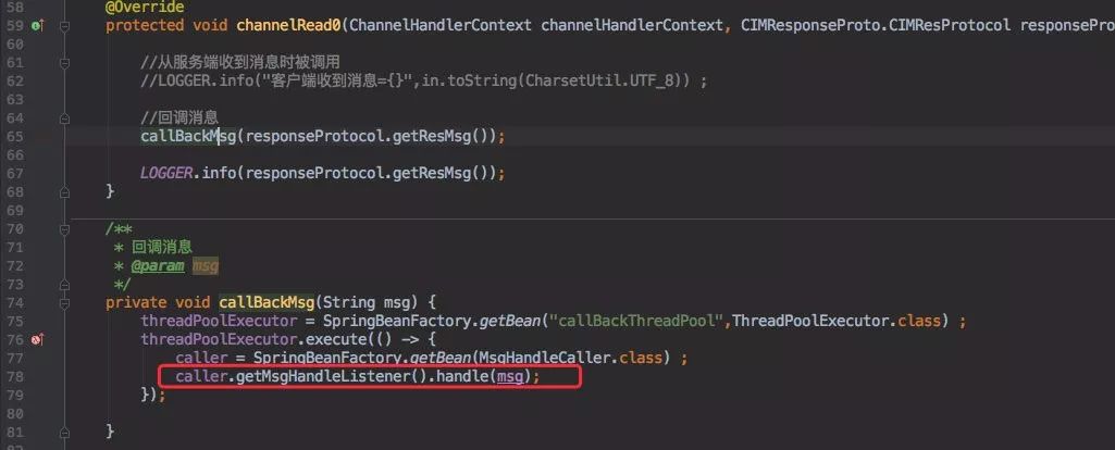 为了满足一些定制需求,比如消息需要保存之类的。所以在客户端收到消息之后会回调一个接口,在这个接口中可以自定义实现。