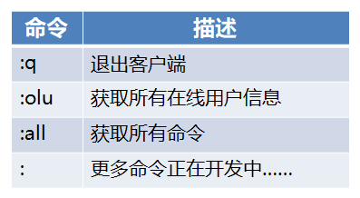 客户端也内置了一些基本命令来方便使用。