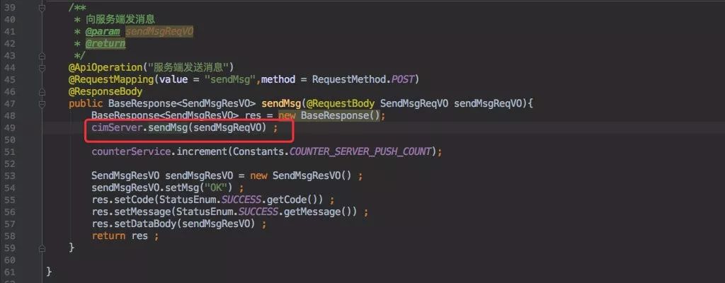 cim-server 收到消息后会在内部缓存中查询该 userID 的通道,接着只需要发消息即可。