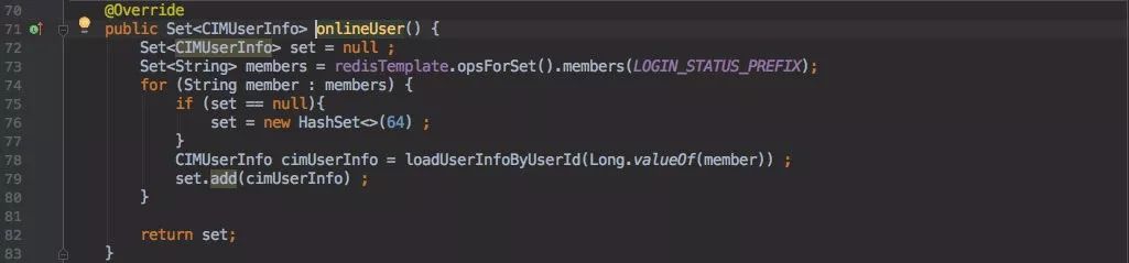 实现也很简单,也就是查询之前保存 ”用户登录状态的那个去重 set “即可。