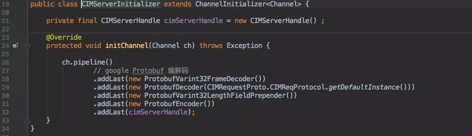 从 Pipline 中可以看出使用了 Protobuf 的编解码(具体报文在客户端中分析)。