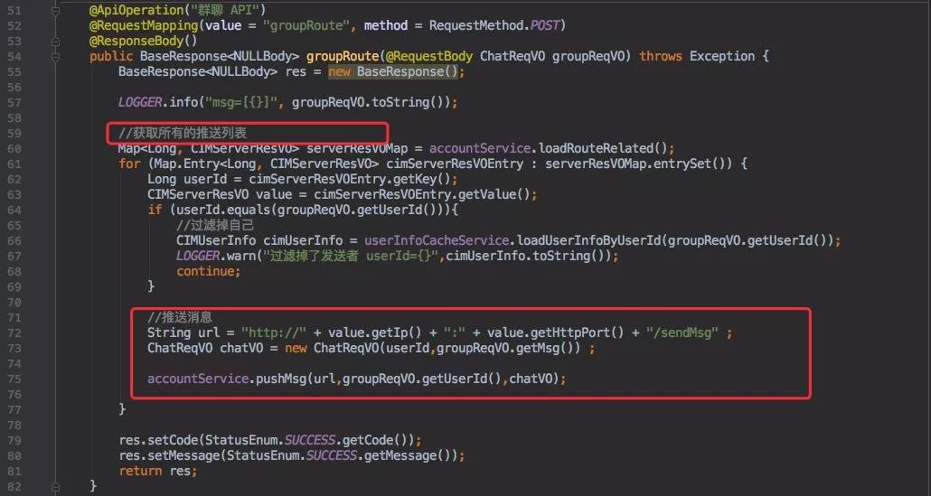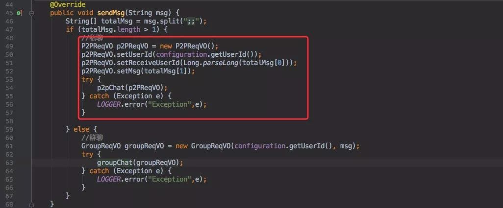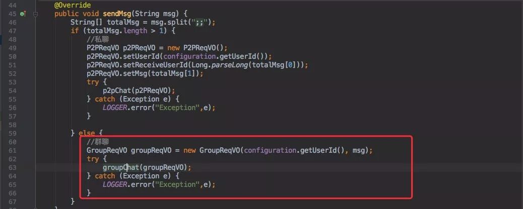 只是群聊是遍历所有的在线用户,私聊只发送一个的区别。