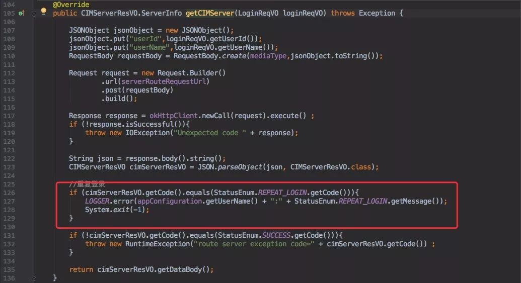 登录过程中 Route 接口会判断是否为重复登录,重复登录则会直接退出程序。