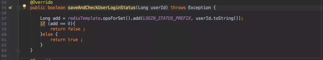 为了实现只能一个用户登录,使用了 Redis 中的 Set 来保存登录信息;利用 userID 作为 Key ,重复的登录就会写入失败。