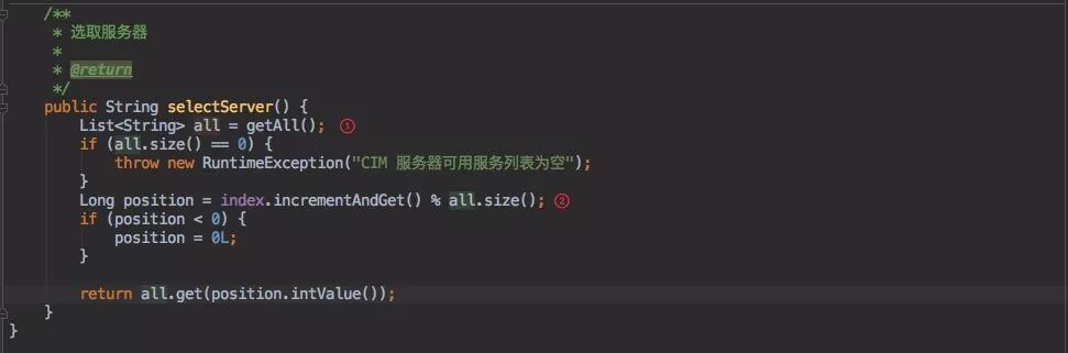 登录成功后需要从 Zookeeper 中获取服务列表(cim-server)并根据某种算法选择一台服务返回给客户端。