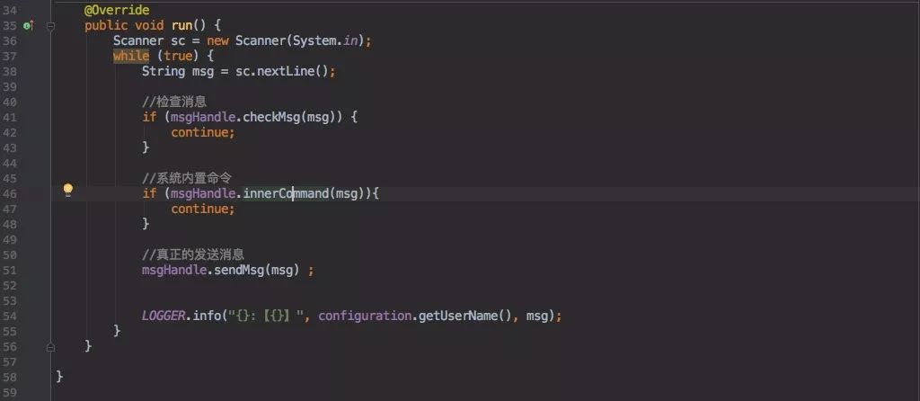 由于我自己不怎么会写界面,但保不准有其他大牛会写。所以客户端中的群聊、私聊、获取在线用户、消息回调等业务(以及之后的业务)都是以接口形式提供。