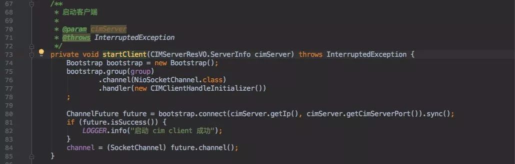接下来是利用 Route 接口返回的 cim-server 实例信息(ip+port)创建连接。