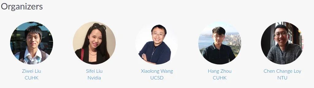 本次 Workshop 的组织者由来自 MMLab(CUHK,NTU)的 Researchers,UCSD 的新晋助理教授王小龙,NVIDIA 的刘思飞,各个 Challenge 的论文作者,以及 Amazon 的 Researchers 组成。