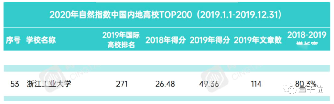在今年4月30日,发布的2020自然指数年度榜单(Nature Index 2020 annual tables)中,浙工大表现亮眼。