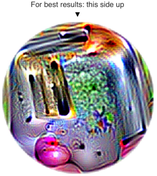图 5:可打印的对抗 patch 的贴纸。为了得到最好的攻击效果,需要按上图所示保持贴纸在 20 度以内的垂直对齐。该 patch 通过白箱集成方法生成。研究观察到该 patch 某种程度上可迁移到第三方 Demitasse 应用(该 patch 并没有专门设计用于欺骗这个应用)。然而,为了有效地攻击,该 patch 的尺寸需要比图 1 中展示的 patch 更大,这正是第三节中描述的对模型的白箱攻击。