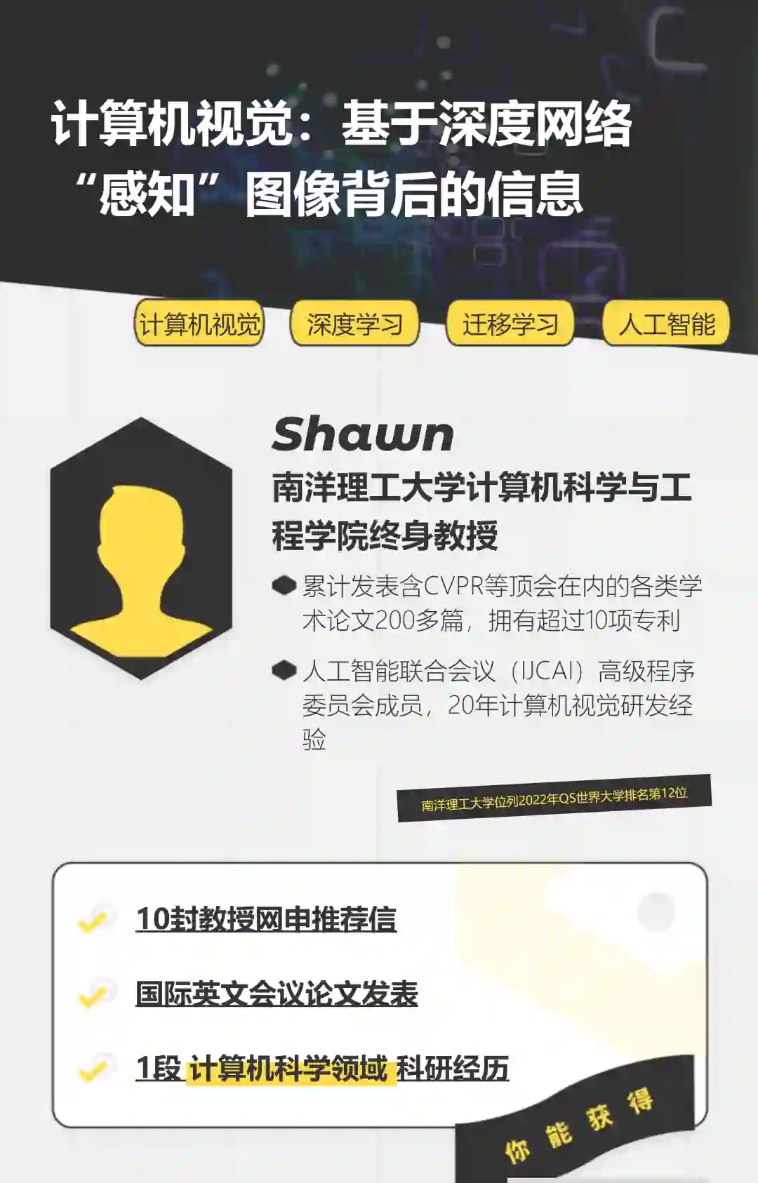 适用于对计算机视觉、机器学习、深度学习、迁移学习、人工智能专业方向感兴趣的同学