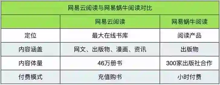 其在在线阅读领域也有多款产品:网易云阅读App,网易蜗牛App,网易蜗牛共读,三者之间定位和目标也有所区别。