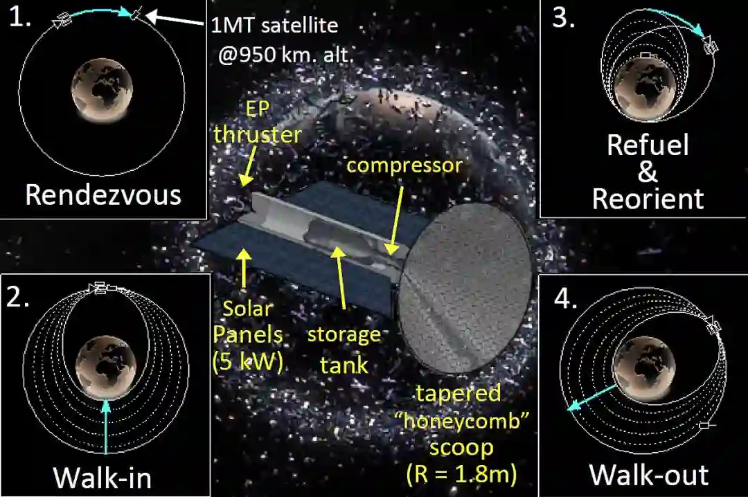 科学家提议打造横切远地点燃料补给轨道导航仪(CHARON),利用主动碎片清理技术(ADR)移除太空垃圾。ADR技术能够改变某些最大太空碎片的位置,让它们进入衰减轨道,在不到25年时间里一步步坠落地球大气层并燃烧殆尽。CHARON由从低地球轨道获取的低密度氮和氧提供动力。
