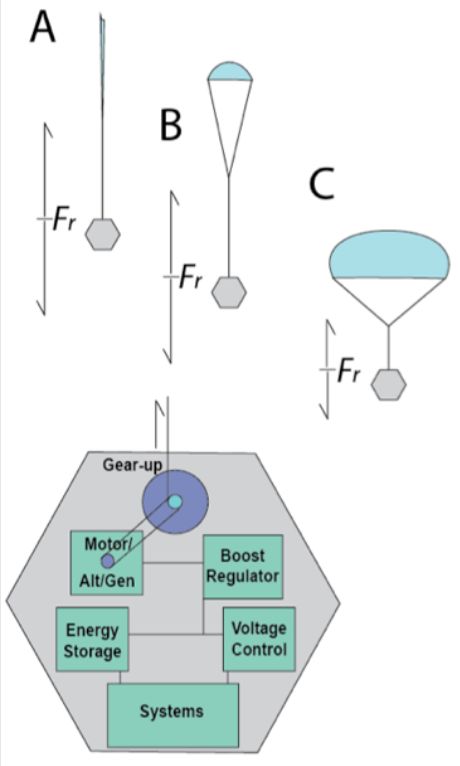 让探测器登陆行星是一项令人敬畏的挑战。太阳能并非始终可以获取,其它能源的成本高、风险大或者过于复杂。开伞索解缆动力系统(RIPS)能够让探测器降落到拥有致密大气层的行星表面。宇航局表示:“RIPS利用了致密大气层这个有利条件,借助阻力或者浮力产生电量。在执行某些任务时,这种动力系统在重量、成本、发电量和复杂性方面均优于常规能源。”