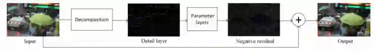1、类似ResNet的思路,回归带雨图像与原图的残差,而不是直接输出还原图像。这样一来可以使算法操作的图像目标值域缩小,稀疏性增强。实际上这一点在超分辨率等很多问题中已经被广泛应用。