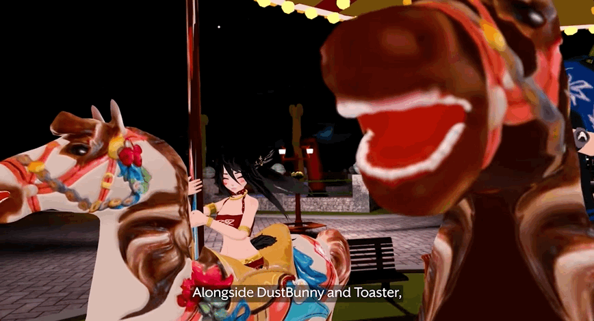 「我们在虚拟现实中相遇」其中讲述了一位来自英国的肚皮舞娘和另一个住在迈阿密的VRChat用户在虚拟现实中相识,然后在一起的故事。