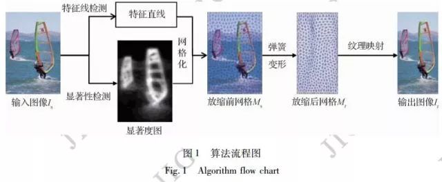 首先,为控制图像缩放,对输入图像进行显著性检测和特征直线检测;