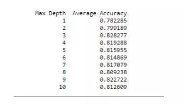 最后,在决策树中的深度是不同的,让我们看看模型的准确性。