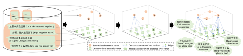 如图2所示,本文分三步从语料库的所有多轮对话中发现一个对话图。