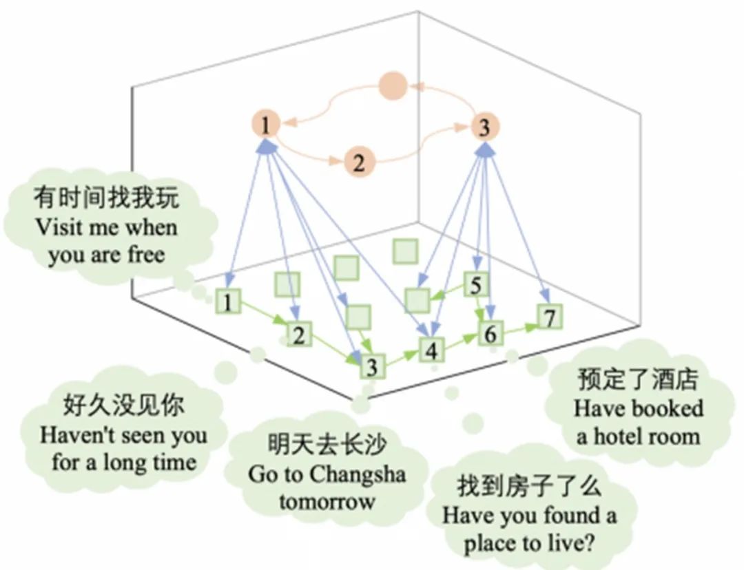 在本文中,对话结构图是一个两层的有向图,捕捉了对话状态以及状态之间的转移关系。