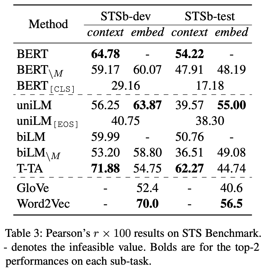 ▲ 原论文的实验表格之一。可以看到T-TA在语义表达方面有它的独特优势。