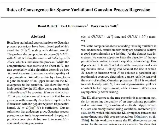 《稀疏变分高斯过程回归的收敛速度》,论文作者来自剑桥大学。