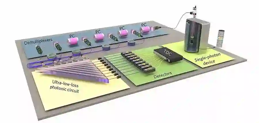 然而,由于单光子源和多端口光学干涉仪效率不高,以前的原理验证实验受到小光子数和低采样率的影响。