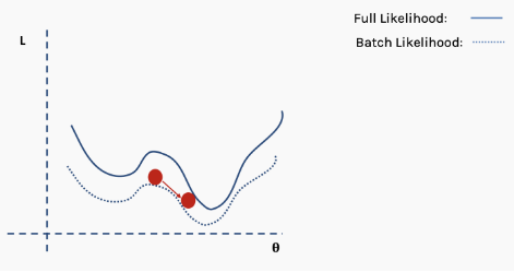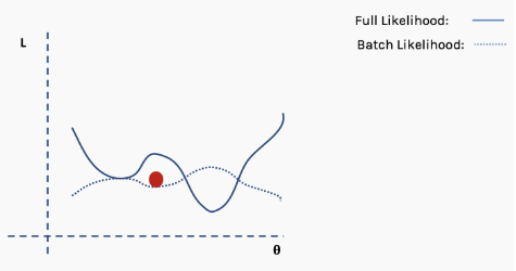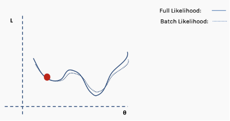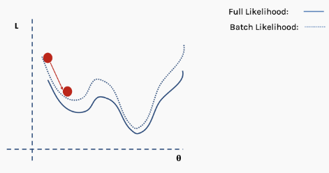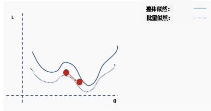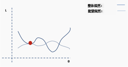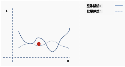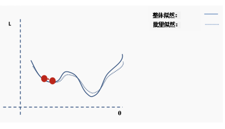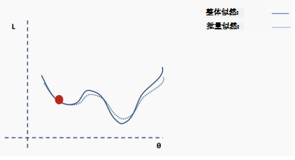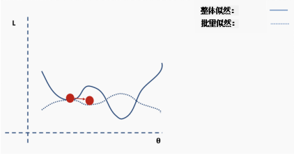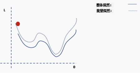 然后我们选择一批数据,可能是整个数据集的10%,并构建一个新的损失函数曲面。
