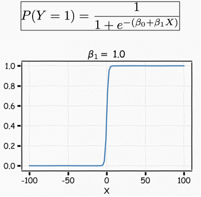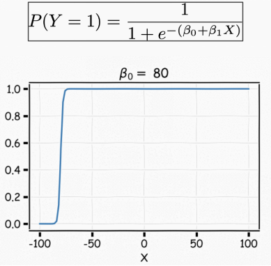 这样,模型就能用S型曲线预测P(y=1),这也是logistic函数的基本形状。β0控制曲线右移或左移c=-β0/β1,而β1控制S型曲线的陡峭度。