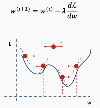 如何执行这样不断更新的过程呢?这是使用一种称为梯度下降的方法完成的,这在前面已经简单地提到过。