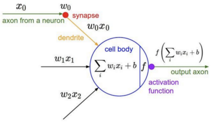 我们可以画一张神经图,把神经网络中的神经元结构和人工神经元进行类比。