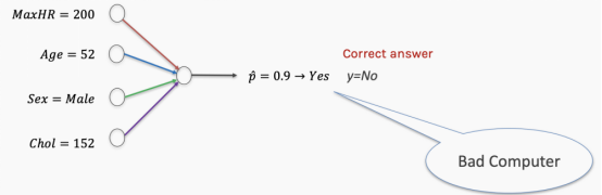 我们首先要做的是设置随机选择的权重。在我们的心脏数据中,随机权重很可能表现得很糟糕,模型会因此给出错误的答案。