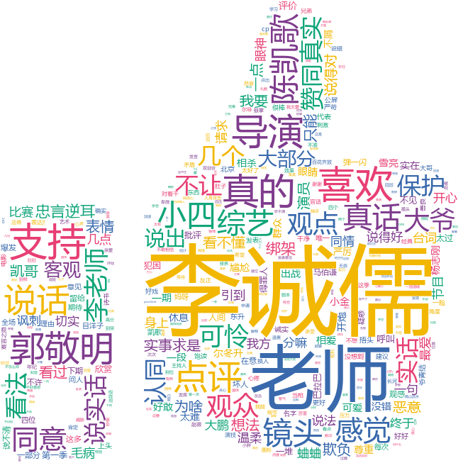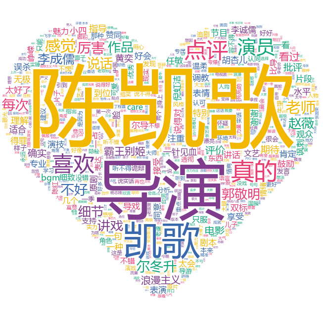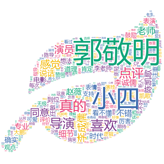 从评价词云图中可见,话题主要集中在郭敬明、尔冬升、陈凯歌、李诚儒几位嘉宾上。这也是《演员2》被诟病的一点,嘉宾导师比参赛的演员更出圈,更有话题。此外,"节目"、"演技"、"点评"等也是短评中常出现的。