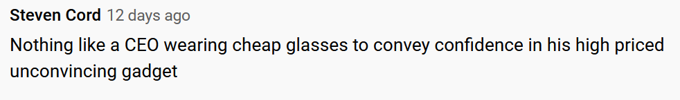 不过不甚积极的反响更好看,看了InWith的CEO接受采访的视频后,有人非常尖锐地说:「没有什么动作,比老板戴着便宜的老式眼镜、同时吹嘘自家的高价未验证隐形镜片,更能提振市场信心啦。」