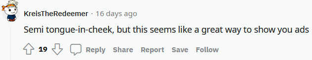 当下网络广告议题带来的冷嘲笑话,也波及了AR隐形眼镜的话题:「不是我故意刻薄,这玩意看上去可真是投放广告的好渠道。」