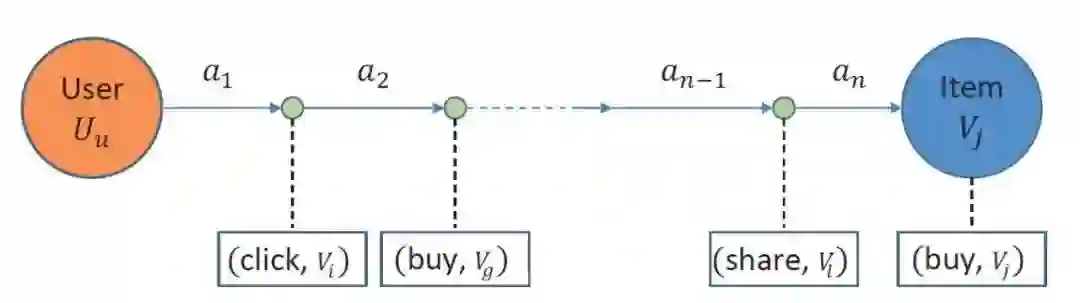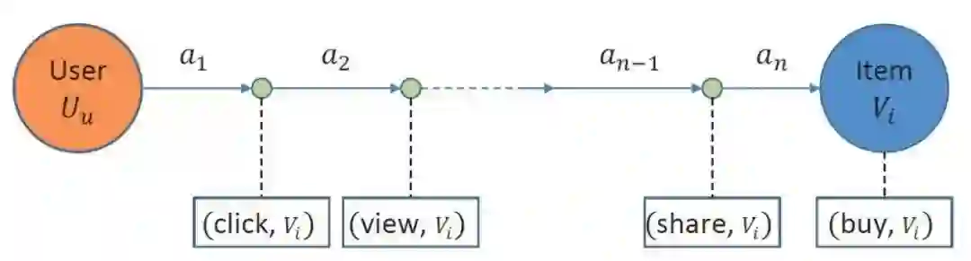 本文根据序列的某些特点,创新性地提出了对序列的三种分类:基于体验的行为序列 (experience-based behavior sequence),基于交易的行为序列 (transaction-based behavior sequence) 和基于交互的行为序列 (interaction-based behavior sequence)。在基于体验的行为序列中,用户以不同的行为类型与同一物品进行交互;基于交易的行为序列记录了用户交互的一系列物品,而行为类型是单一的(如购买);基于交互的行为序列是前两者行为序列的混合,包含不同的行为对象和类型,它更接近实际应用中的场景。