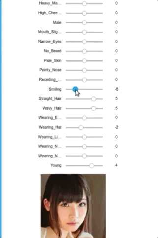 作者还开发了脸部特征控制器,比如多笑、多尖鼻、多直发......这种定制式的风格似乎与我们今天的主题——完美女友很般配!