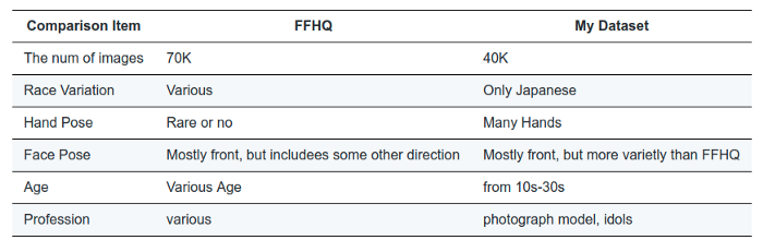 数据集与FFHQ数据集的极粗略对比如下: