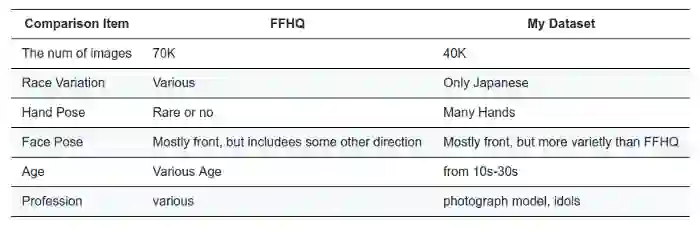 在这两种情况下,GAN都成功学习生成了前脸图像。在数据集中,数量较少的图像是无法学习生成的。(例如,为了更好地摆姿势而使用手,有麦克风,食物......等)在40000数据集中,手的生成效果更好一些。