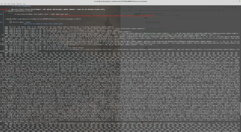 根据我的经验,自定义的元语言往往会很快失控,并殃及整个代码库,加剧深入理解的难度。不仅理解代码会受到影响,而且编译器与开发人员的交互也会受到影响,你有没有使用复杂的类型或宏 API 的经历?如果有,那么应该非常熟悉晦涩难懂的编译器诊断结果,就像下面的截图一样: