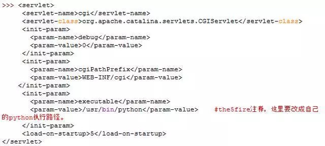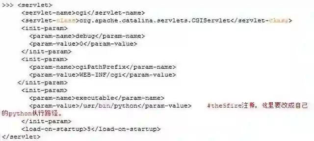 2、在Tomcat的%CATALINA_BASE%/conf/web.xml 文件中,把关于<servlet-name> CGI的那段的注释去掉。内容样式如下: