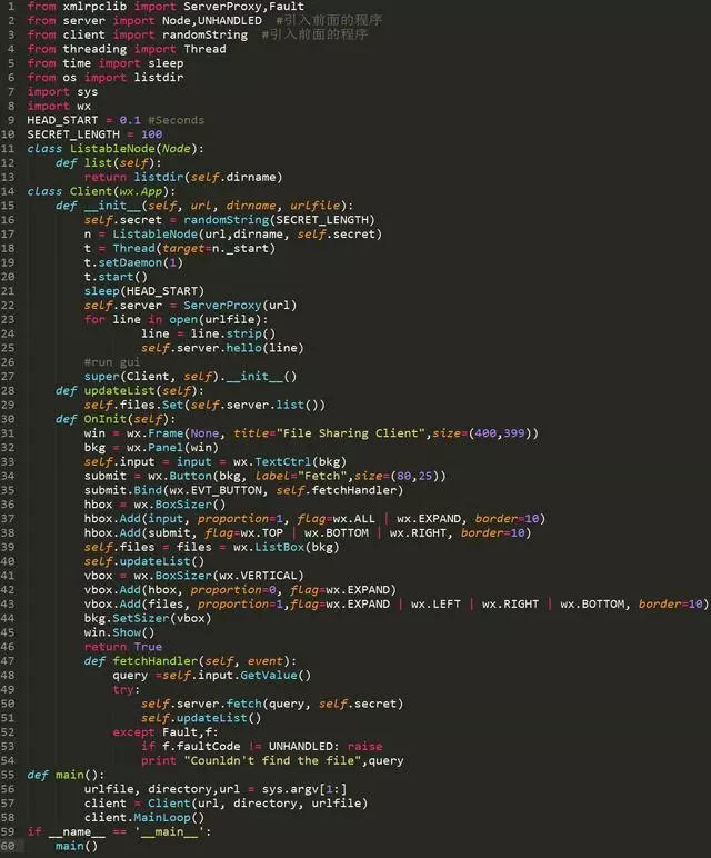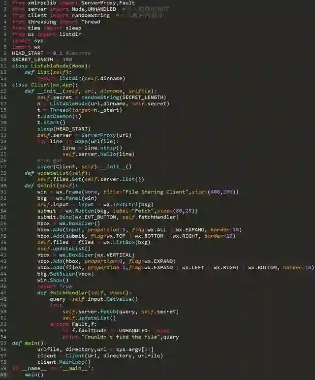 这个里面的主要的问题应该都集中在界面上,远程共享的代码已经不需要修改了,只需要把现在的界面接上前面的代码就ok。这个wxPython库的使用,我觉得和以前使用java的awt编写界面没啥区别,没有什么难点,只是需要理解里面的几个概念,像是按钮、文本框、绑定事件,仅此而已。