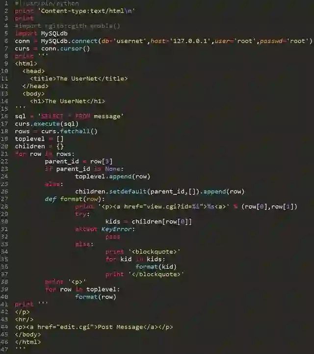 不过后来慢慢的接触web编程时间长了,觉得cgi编程并不是像传说中的那么难,只不过是比较麻烦,在后台使用html硬编码来完成(也就是在后台使用类似print的语句输出html)。通过浏览器直接访问cgi文件,由web服务器执行cgi脚本,输出内容到浏览器。