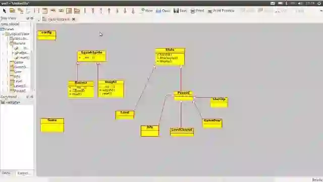 3、然后还有游戏中的各种状态模块,状态模块中的类继承关系稍微多一些,处于家谱最上方的就是state类,由它来衍生其他的所有状态,它的直接子类是Level和Pause,其中Pause有衍生出子类Info、levelCleared、GameOver、StartUp。 4、最后就是游戏的主模块,用来让其他模块协调工作的。