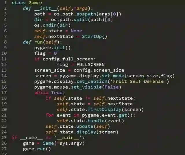 忽略掉init中的设置代码,在run中,该管理类首先调用pygame初始化并启动游戏界面,然后在一个while True的死循环中不断的进行状态判断,事件处理,然后根据事件更新当前状态,并且绘制界面。