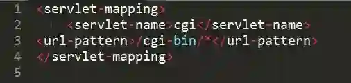 3、在Tomcat的%CATALINA_BASE%/conf/web.xml文件中,把关于对CGI进行映射的那段的注释去掉。内容样式如下: