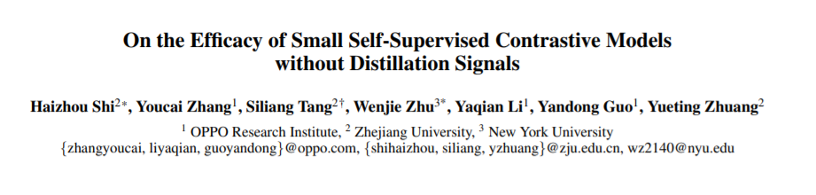 本文介绍我们被AAAI'22接收的工作《On the Efficacy of Small Self-Supervised Contrastive Models without Distillation Signals》。该工作在OPPO研究院 @Coler 老师的指导下合作完成,同时向实习期间给予过宝贵帮助的同事们 @油炸蘑菇表示感谢,尤其特别感谢前辈Zhiyuan Fang在课题初期给我们的建议以及code base的分享。