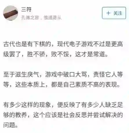 一位名为“三符”的道长看来是个游戏通,他不仅自己玩游戏,还对游戏的价值观有不少深刻的见解。在他心中,电子游戏和下棋无异,只不过更加真实而已。他说:“胜不骄,败不馁,这才是常道。”